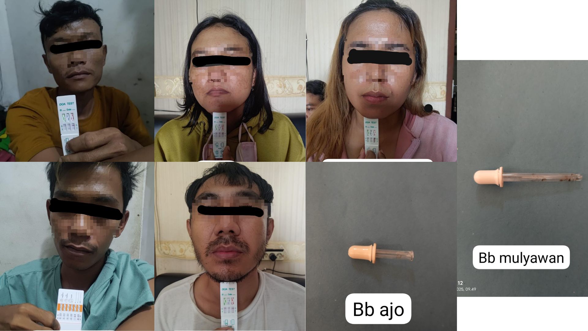 Selanjutnya untuk Barang bukti diantaranya 6 (enam) buah alat tes urine positif sabu, 6 (enam) Surat Keterangan Hasil Pemeriksaan Urine dengan hasil Positif dan 2 (Dua) Pipet kaca bekas pakai yang dipergunakan oleh masing masing tersangka.