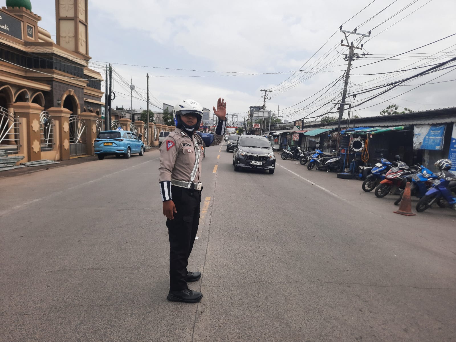 Jajaran Polres Cilegon Polda Banten, Terpantau tetap melaksanakan pengamanan dan pengaturan lalu lintas guna memastikan kelancaran serta kenyamanan para pengguna jalan. (Foto: Bidhumas Polda Banten)