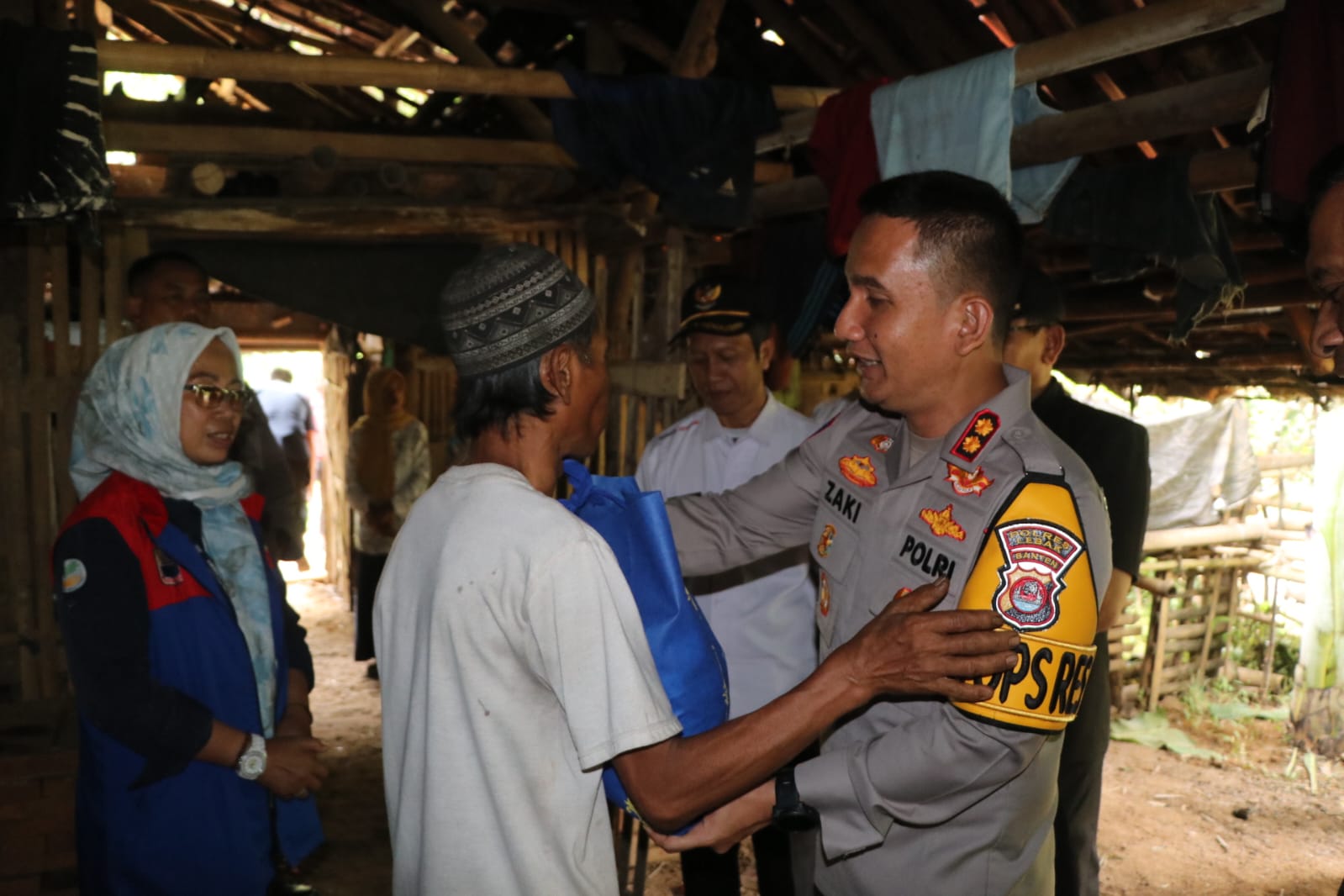 Dalam bakti sosial tersebut Kapolres Lebak Polda Banten AKBP HERFIO ZAKI, S.I.K., M.H secara simbolis memberikan bantuan bingkisan secara langsung diterima oleh Sdr.Ruslan.