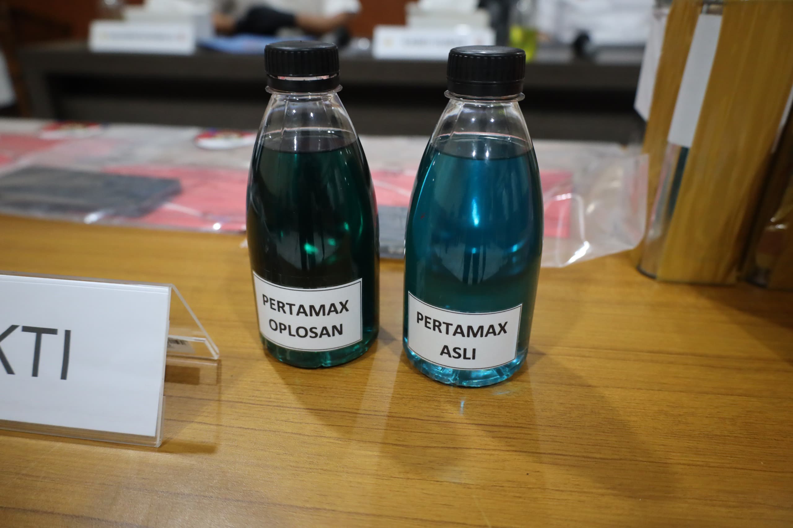 “Setelah para pelaku selesai melakukan pencampuran dan saat dilakukan pengambilan sample terhadap BBM tersebut hasil BBM Pertamax tersebut berwana Biru Pekat (Tidak sesuai dengan warna BBM Pertamax) sehingga para Pelaku melakukan pembelian kembali BBM jenis pertamax dari pihak PERTAMINA PATRA NIAGA sebanyak 8.000 Liter/8 KL dengan tujuan untuk menyamakan warna seperti warna BBM jenis pertamax dari PERTAMINA PATRA NIAGA sehingga dapat dipasarkan/dijual kembali,” tambahnya.