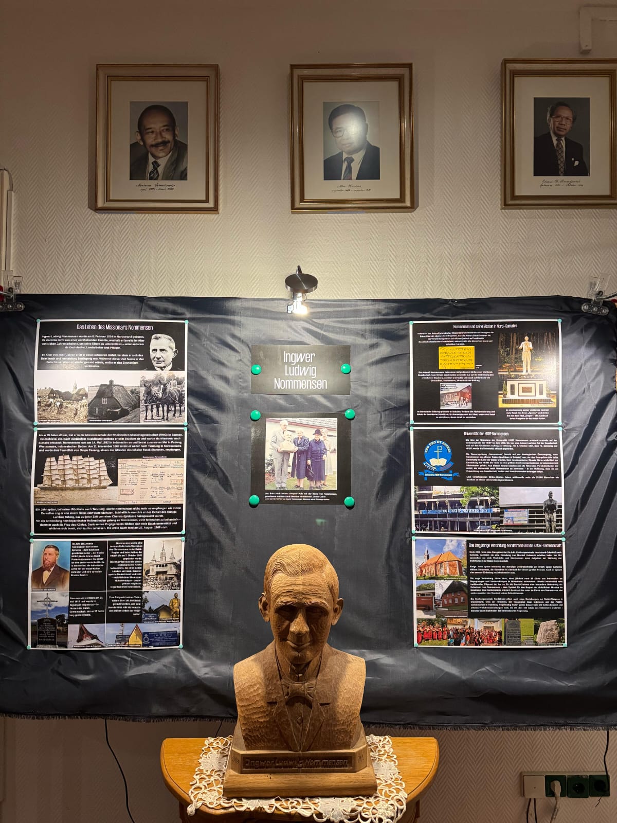 Salah satu momen paling berkesan malam itu adalah pameran foto dan presentasi tentang Batakhaus di Werpeloh—sebuah rumah adat Batak yang dibangun pada tahun 1978 di desa kecil Werpeloh, Jerman. Di balik bangunan unik ini ada kisah inspiratif Pastor Matthäus Bergmann, seorang imam Kapusin yang, meski tak bisa berangkat ke Indonesia karena alasan kesehatan, tetap menjalin hubungan erat dengan budaya Batak melalui saudaranya yang bertugas sebagai misionaris di Sumatra dan lewat keterlibatannya di Kapusin Mission Procuratorate di Münster.