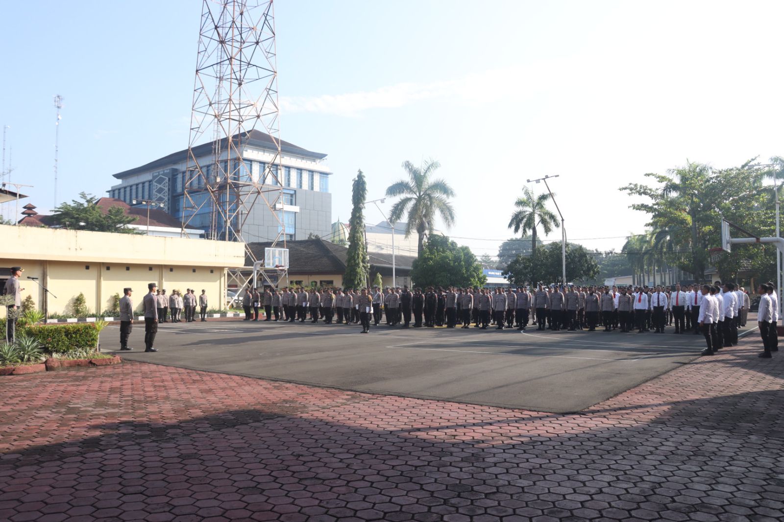 Apel dipimpin langsung oleh Kapolres Cilegon, AKBP Kemas Indra Natanegara, S.H., S.I.K., M.Si., dengan diikuti oleh Wakapolres, para Kabag, Kasat, Kapolsek, para Kasi, perwira, bintara, hingga ASN jajaran Polres Cilegon.