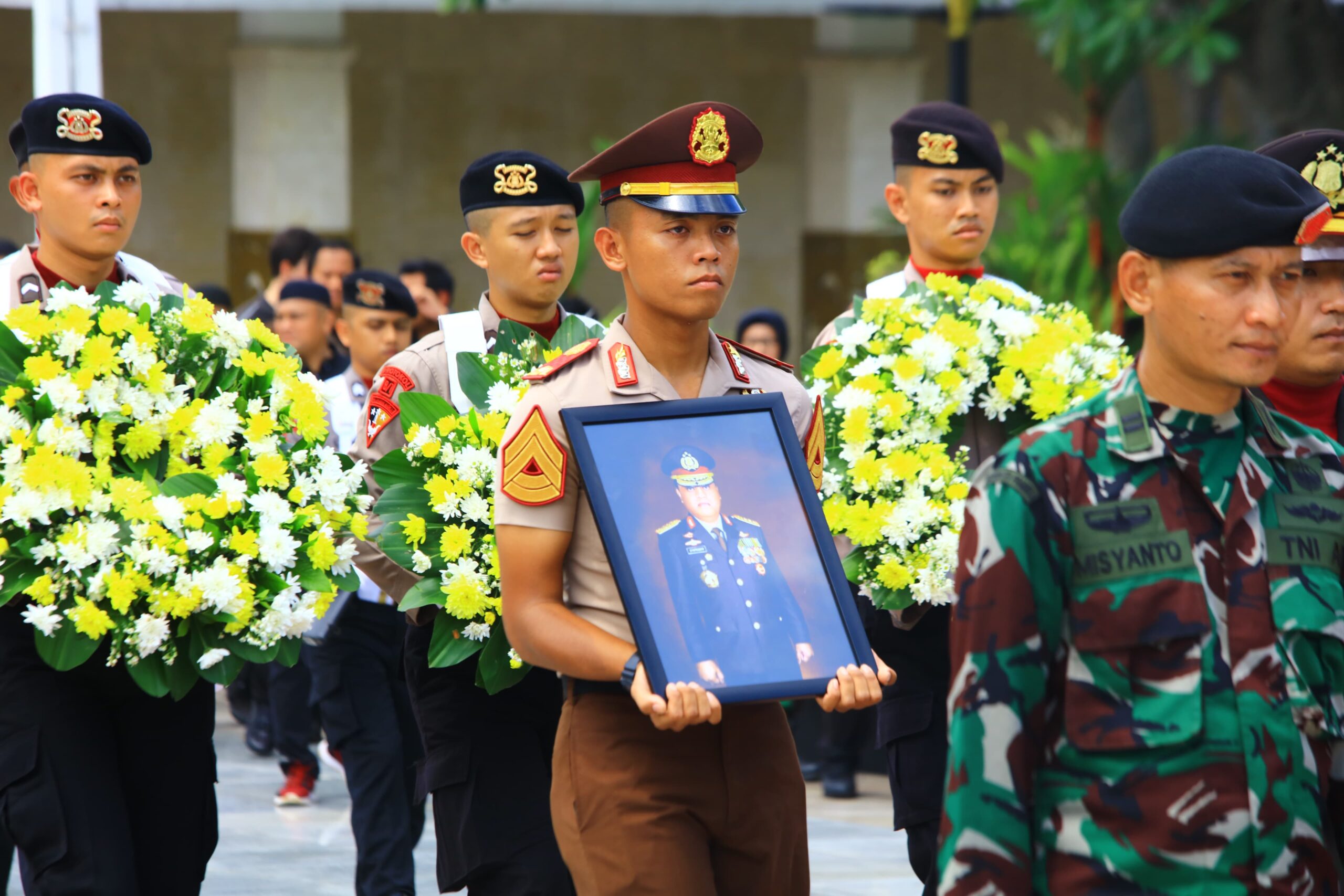 Jenazah tiba sekitar pukul 13.32 WIB. Upacara pemakaman pun langsung dimulai. Kabareskrim memimpin langsung upacara pemakaman tersebut didampingi sejumlah petinggi Polri. Ia mengenakan seragam kedinasan saat menjadi inspektur upacara.