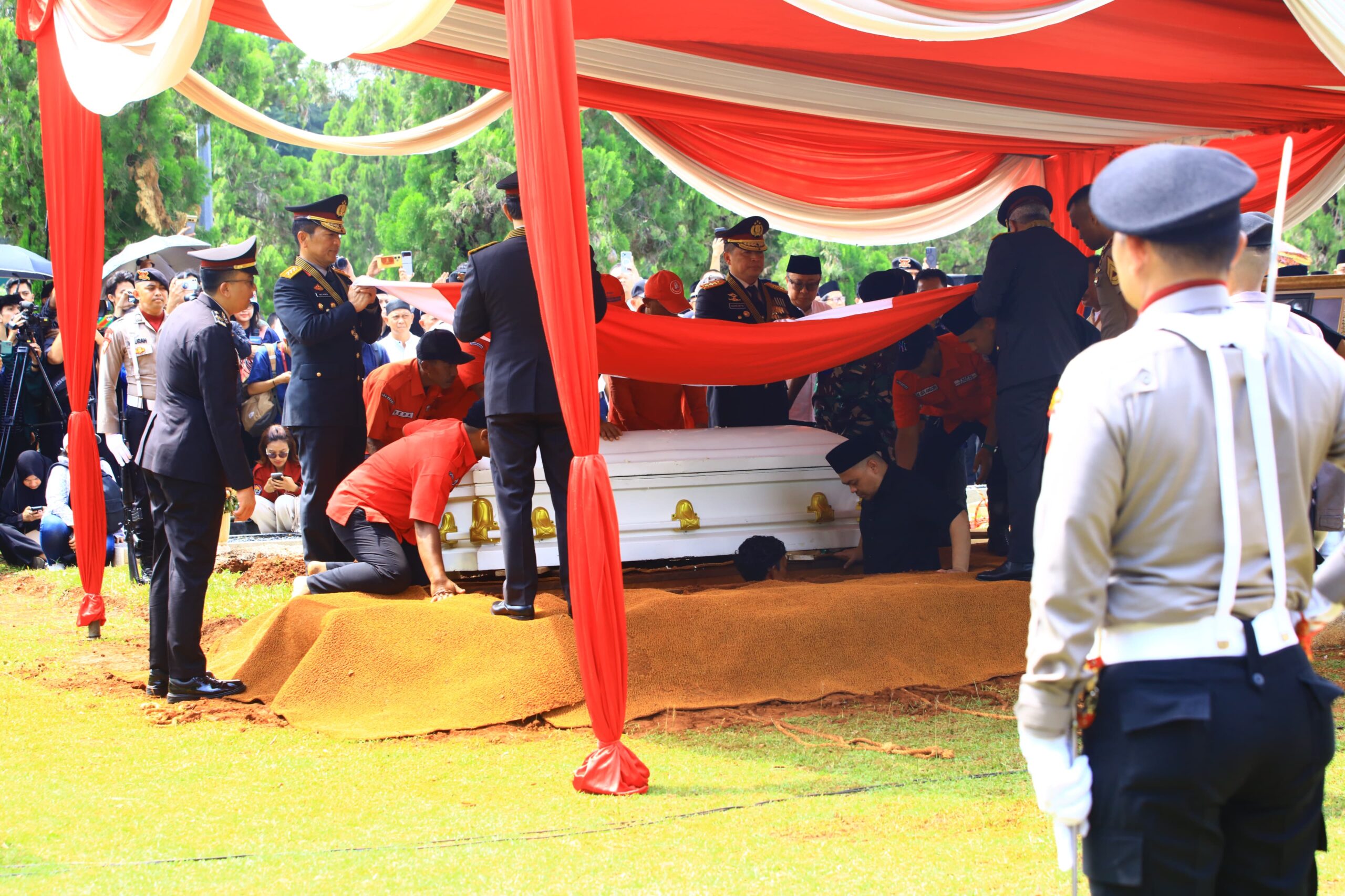 Upacara pemakaman berlangsung dengan khidmat. Seluruh yang hadir menghayati prosesi pemakaman tersebut.