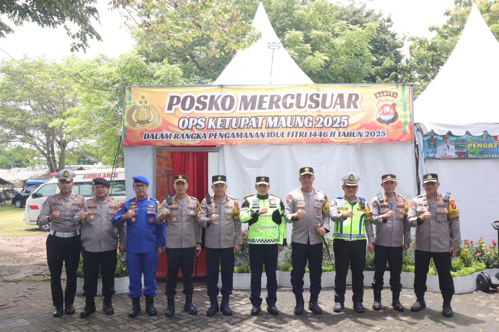 Rombongan Wakapolri tiba di Posko Mercusuar Ops Ketupat Maung 2025 Polda Banten menggunakan kendaraan roda dua (R2) Harley Davidson milik Korlantas Polri. Setibanya di lokasi, Wakapolri disambut oleh Kapolda Banten beserta Wakapolda Banten Brigjen Pol. Hengki, S.I.K., M.H., dan Pejabat Utama Polda Banten lainnya.