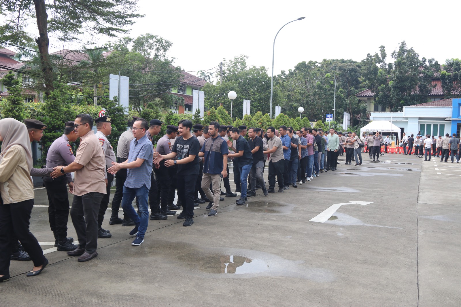 Usai apel, kegiatan dilanjutkan dengan halal bihalal dalam rangka Hari Raya Idulfitri. Kapolresta memimpin langsung momen saling memaafkan tersebut yang berlangsung khidmat dan penuh keakraban.