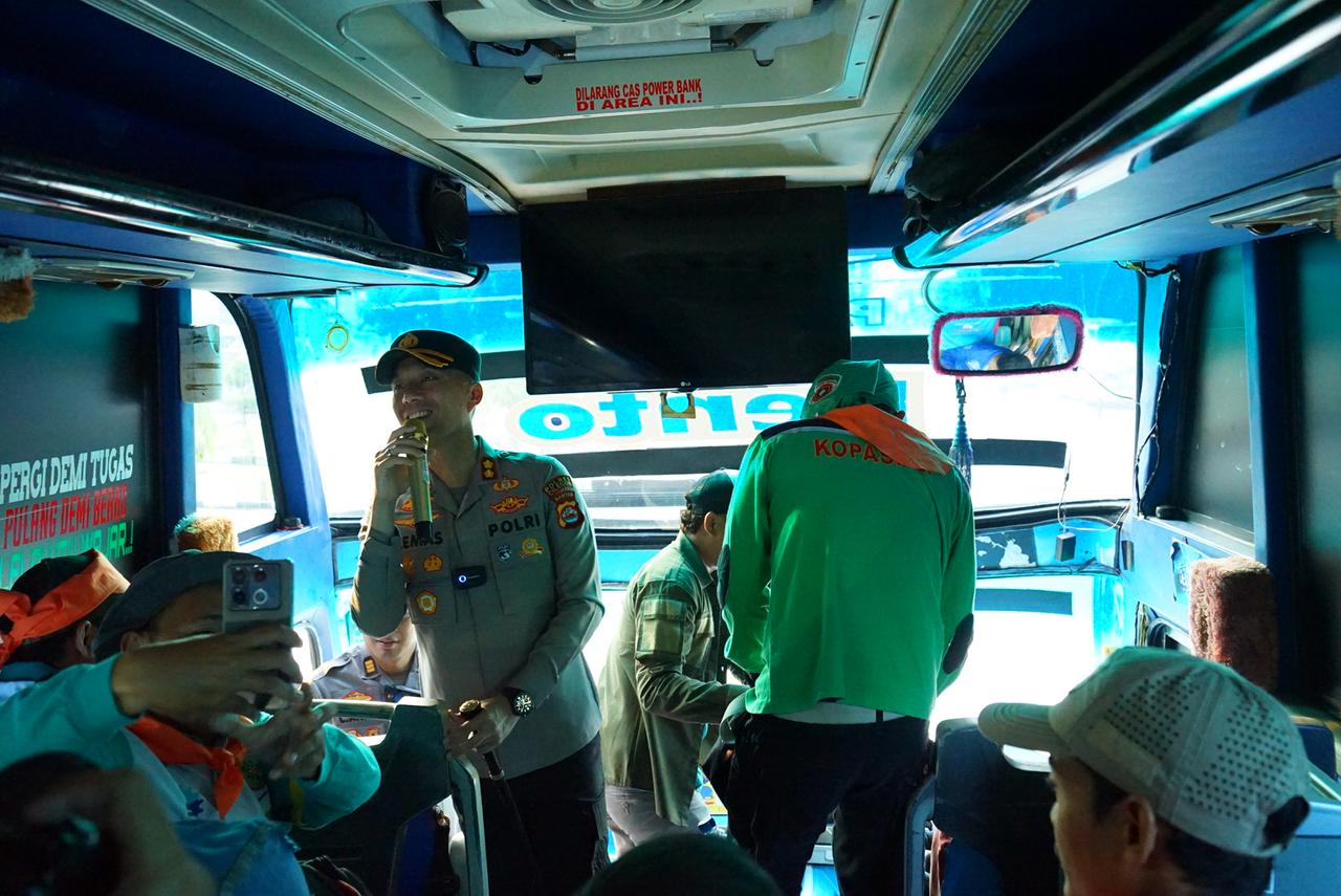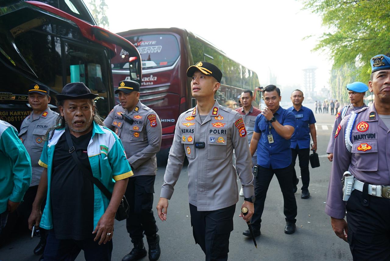 “Berdasarkan data yang kami terima, ada sekitar 1.000 buruh dari tiga Serikat Pekerja yang berangkat menggunakan 40 bus. Untuk memastikan perjalanan berlangsung aman dan tertib, kami menyiapkan pengawalan penuh hingga nanti para buruh kembali ke Cilegon,” ujar Kemas.