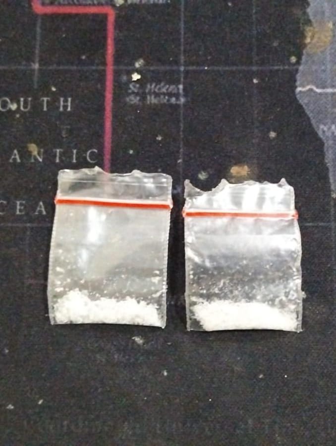 Barang bukti yang diamankan atas kasus tersebut berupa – 2 (dua) bungkus plastik bening berisikan kristal putih diduga narkotika jenis sabu dengan berat brutto + 1,04 gram atau netto ± 0,86 Gram