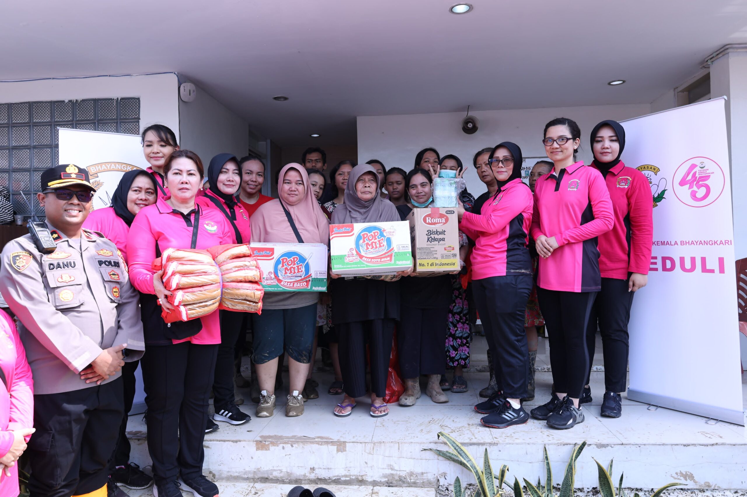 Ketua Cabang Polres Metro Bekasi Kota Bhayangkari Ny. Yani Dani Hamdani Mewakili Ibu Kapolri mengatakan. “Semoga perhatian kecil dari kami dapat membantu meringankan beban dan kesedihan masyarakat korban bencana alam banjir,” tuturnya.